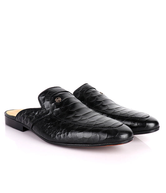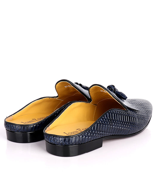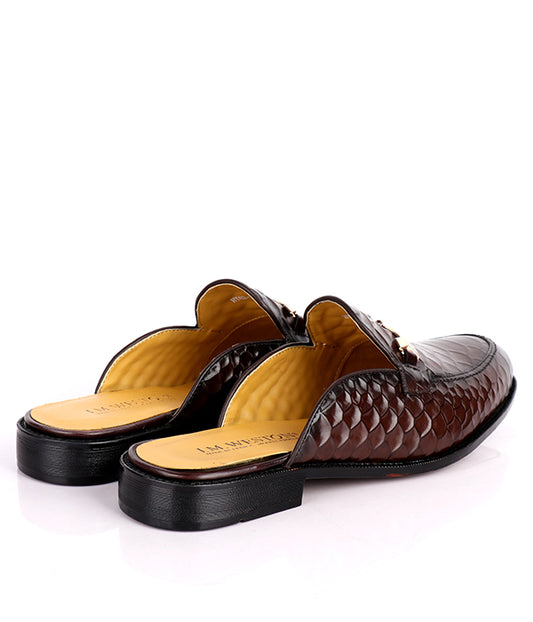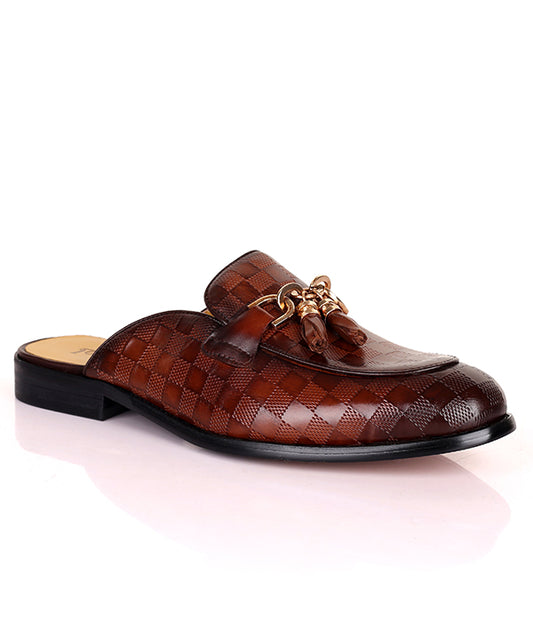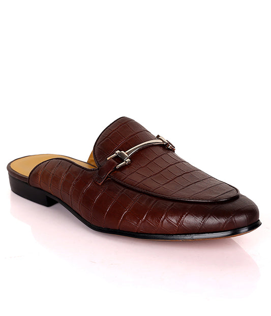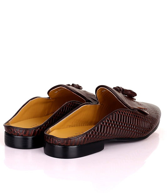 John Foster Croc Design Leather Tassel Men's Mules|Brown