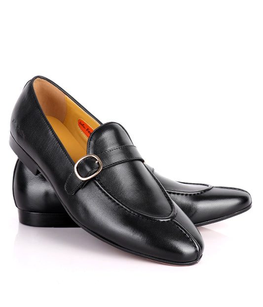 John Foster Plain Leather Buckled Men's Shoes|Black