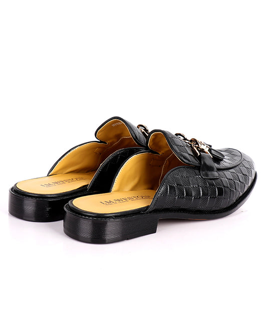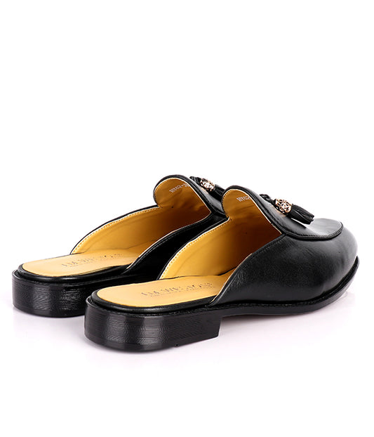 John Foster Men's Tassel Genuine Leather Mules|Black
