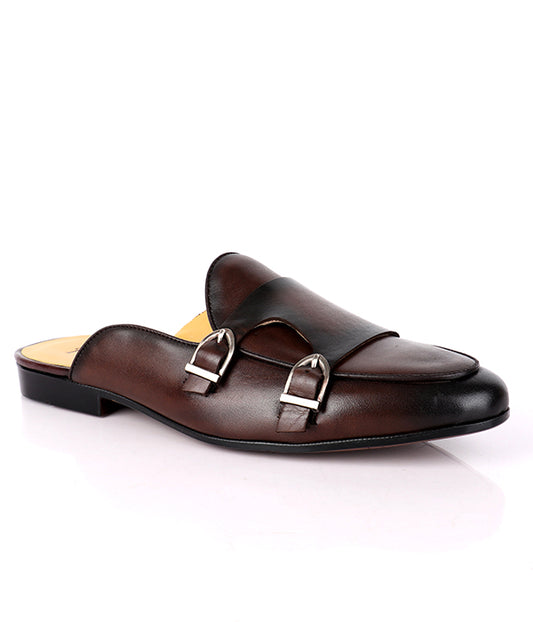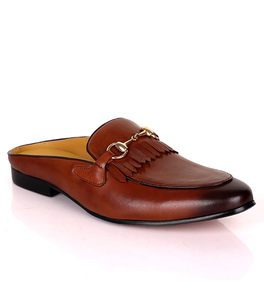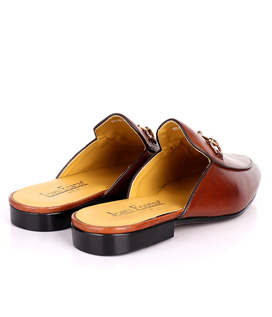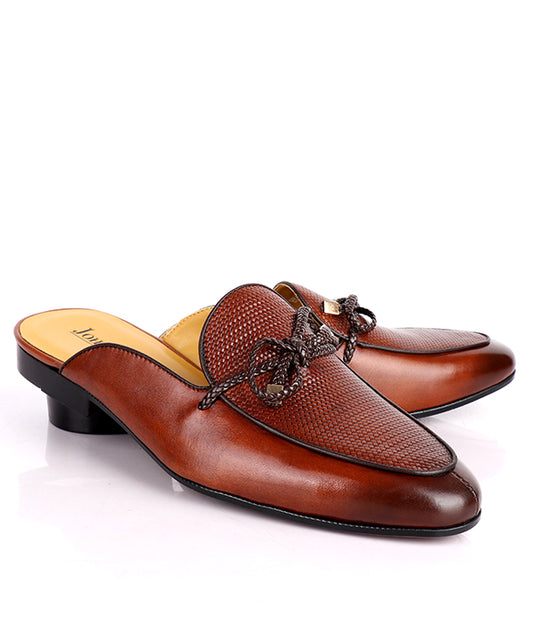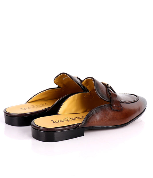 John Foster Plain Genuine Leather Men's Mules|Brown
