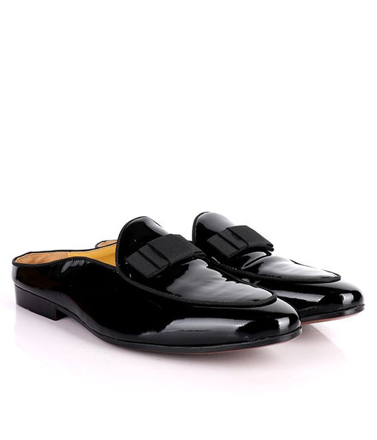 John Foster Dotted Bow Design Genuine Leather Mule|Black