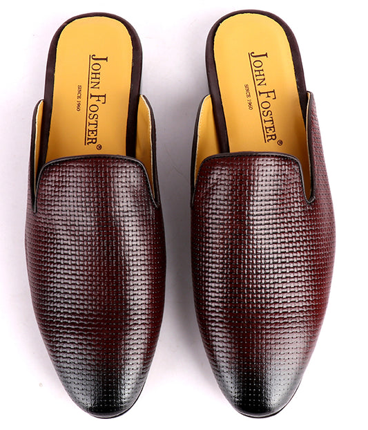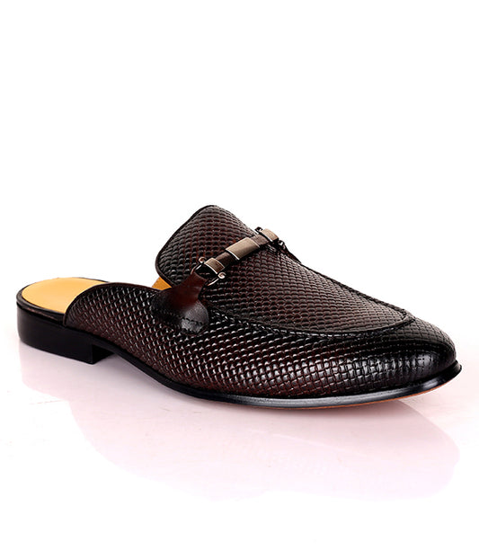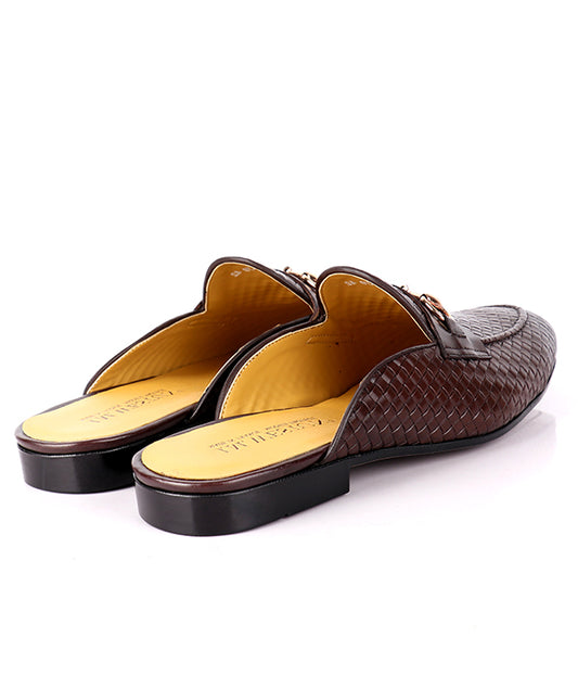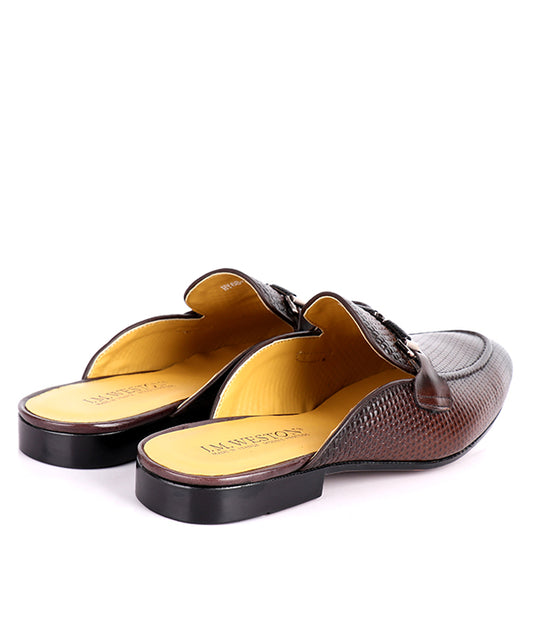 John Foster Woven Horsebit Leather Mules|Coffee-Brown