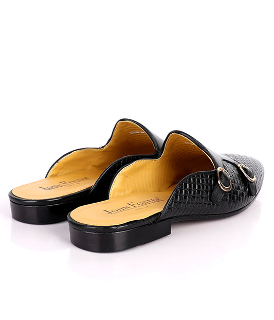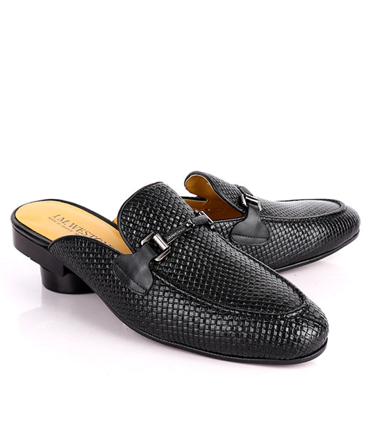 John Foster Woven Horsebit Leather Men's Mules|Black