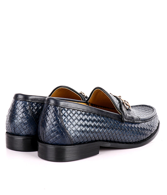 John Foster Woven Horsebit Leather Men's Shoes|Blue