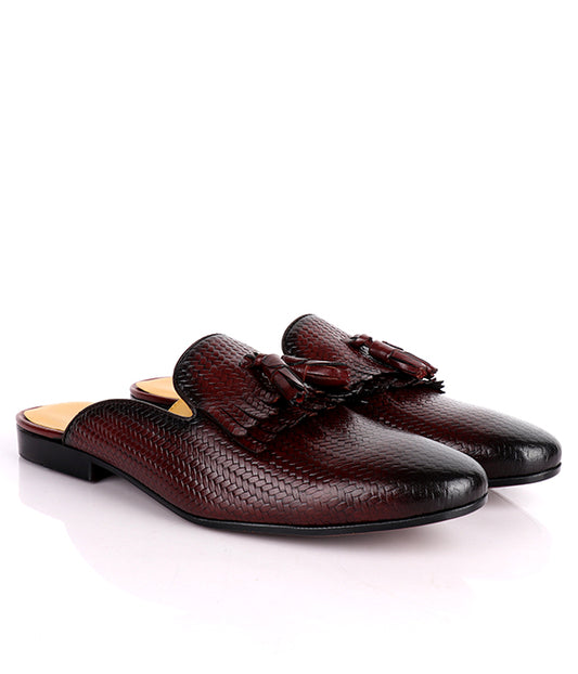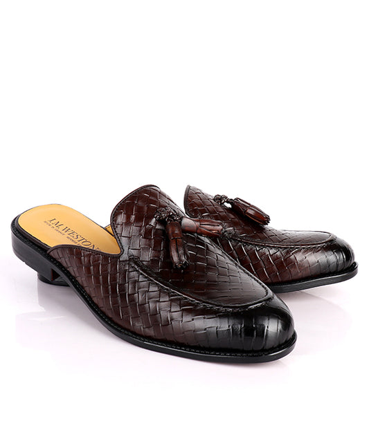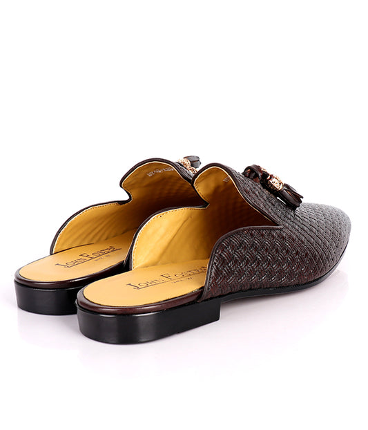 John Foster Wooven Tassel Fringe Mule | Coffee Brown