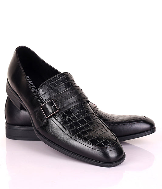 Kenneth Cole Croc Design Single Buckle Loafers Leather Shoes|Black