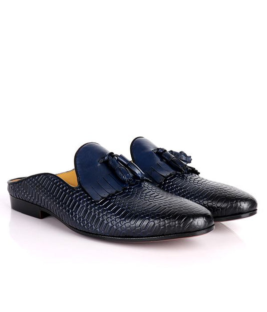 John Foster Wooven Tassel Fringe Mule | Navy Blue