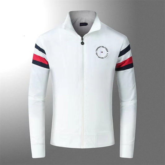 Tommy H Logo Track Jacket White Soft Shell Men's Wind Cover