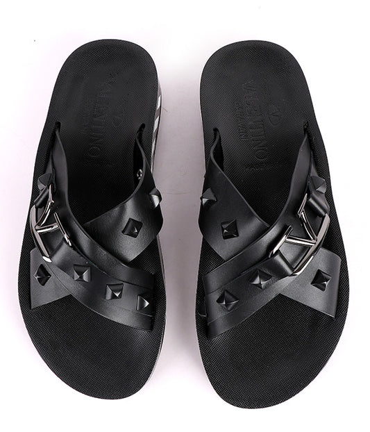 Medusa Twill Weave Men's-Stone Embellished Thong slipper|Black