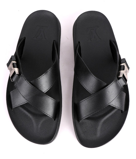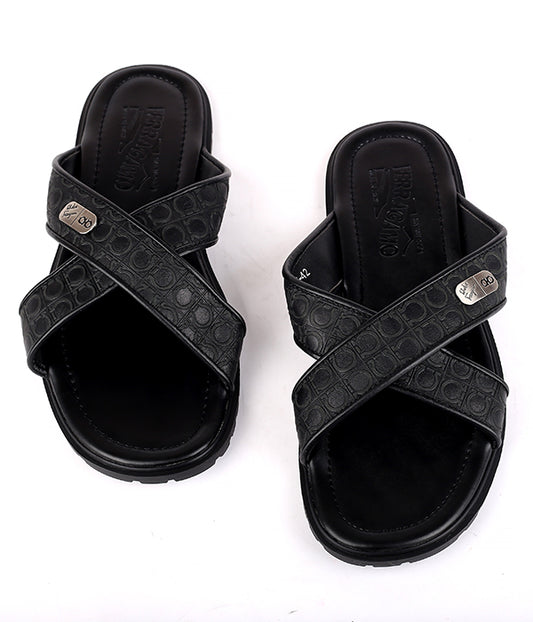 Medusa Twill Weave Men's-Stone Embellished Crisscross Slides|Black