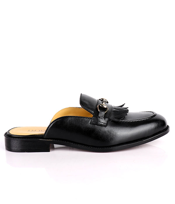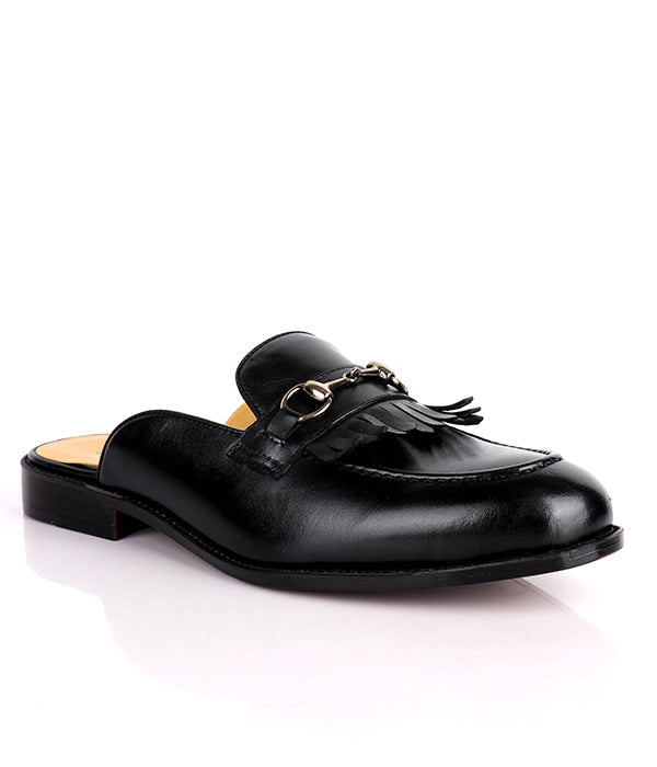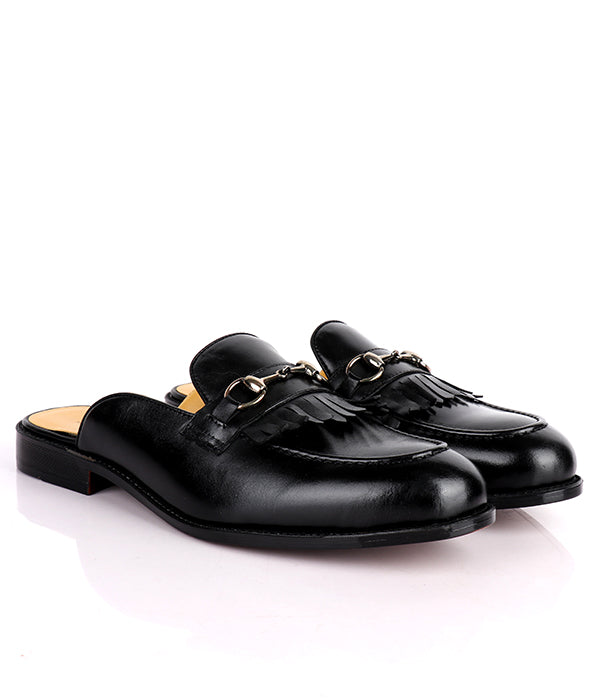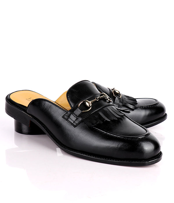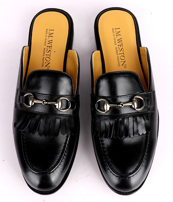 John Foster Kiltie Horsebit Black Calfskin Men's Mules
