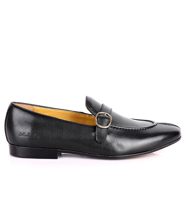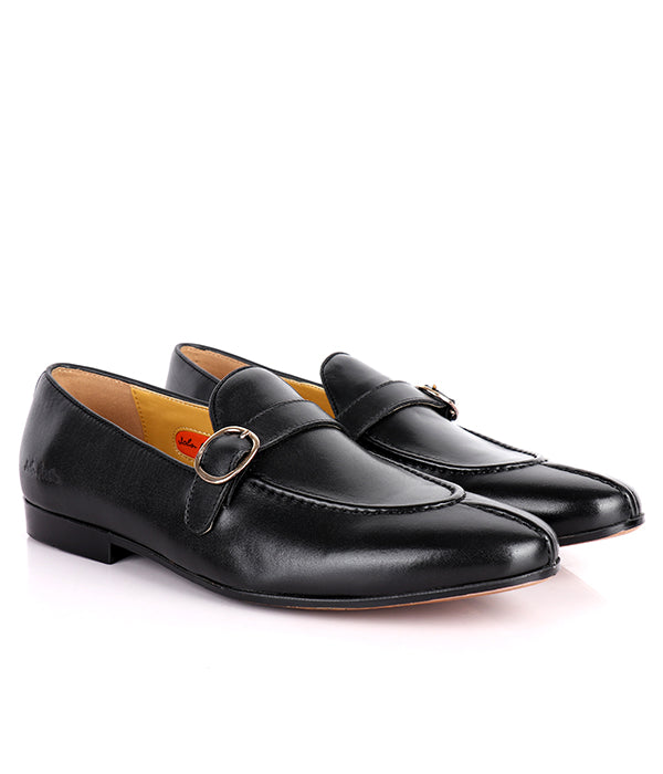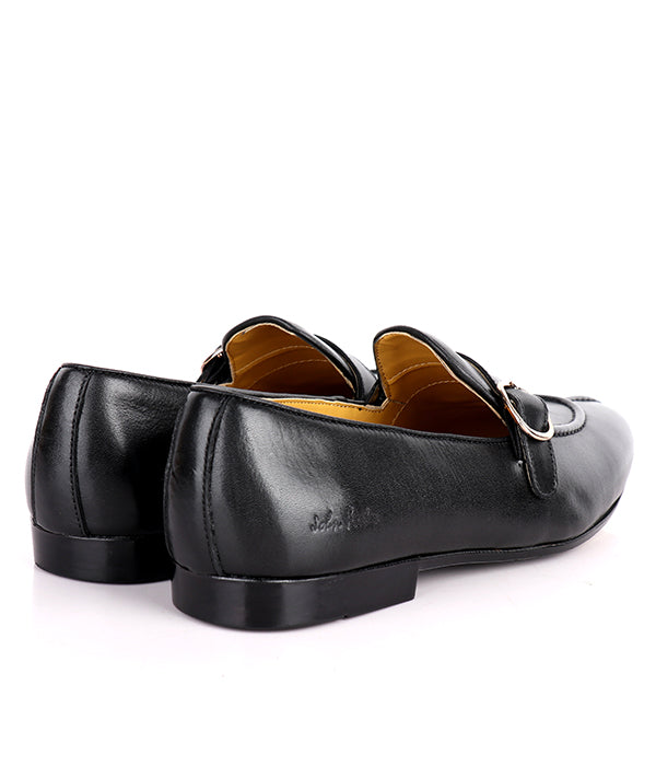 John Foster Plain Leather Buckled Men's Shoes|Black