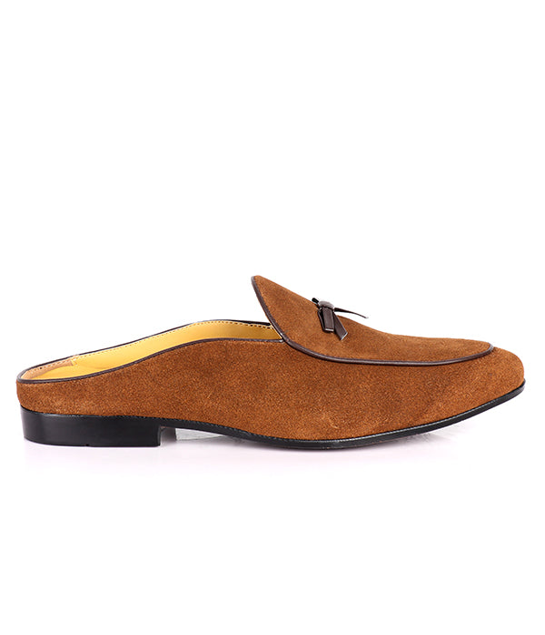 John Foster Suede Bow Design Mule|Brown