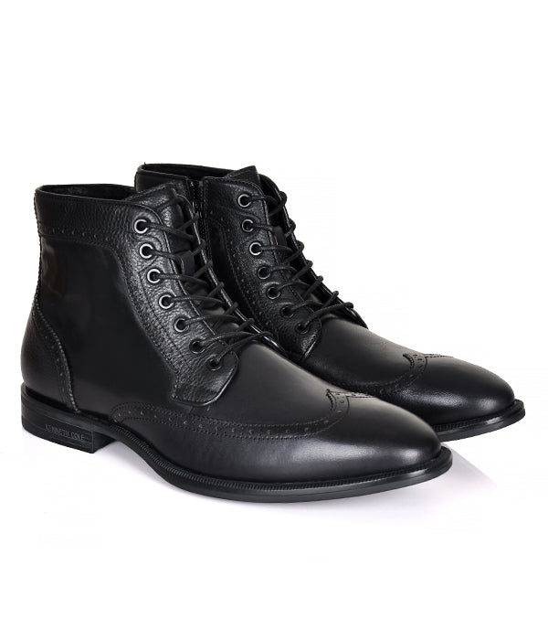 Kenneth Cole Design Leather High-Top Lace-up Shoe Black