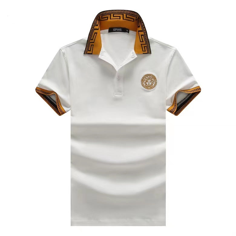 Medusa Gold Greca Collar Men's Polo Shirt-White