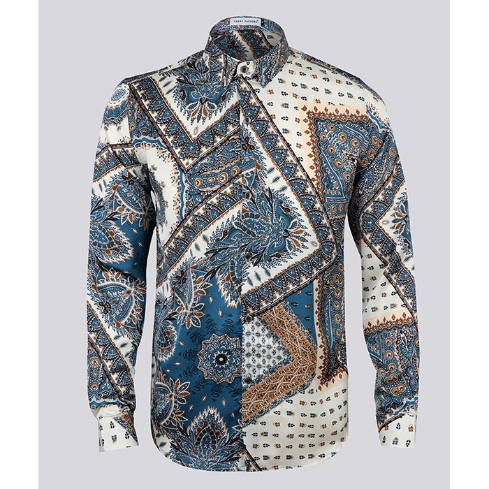 Terry Taylors Vintage Long Sleeve | Turquoise Blue Cream