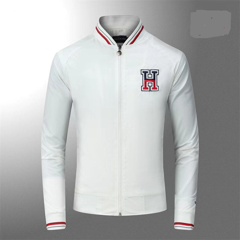 Tommy H Logo Track Jacket White Soft Shell Men's Wind Cover