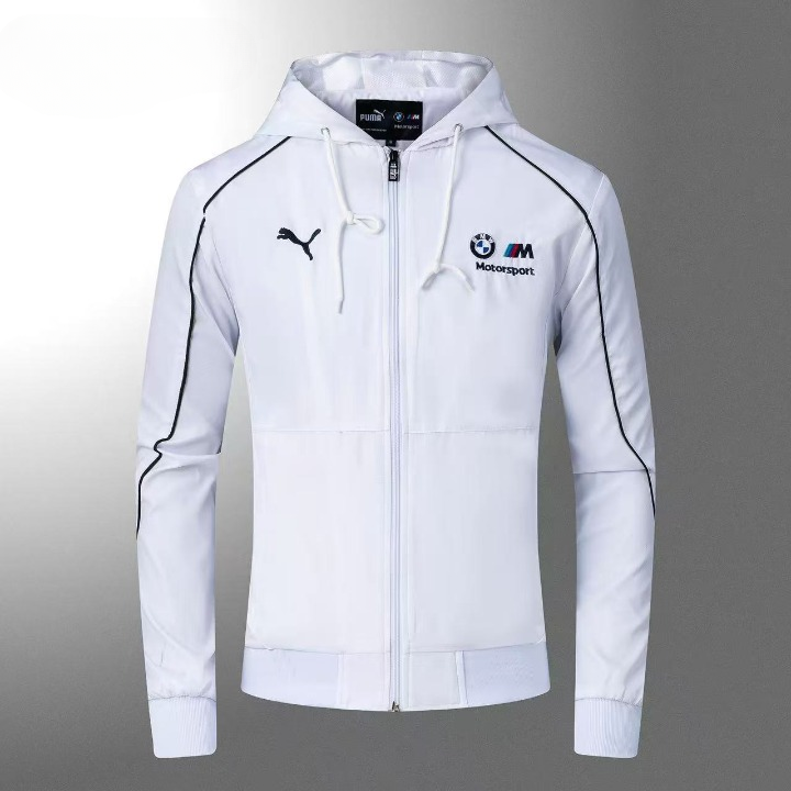 Motorsport white hooded zipper jacket